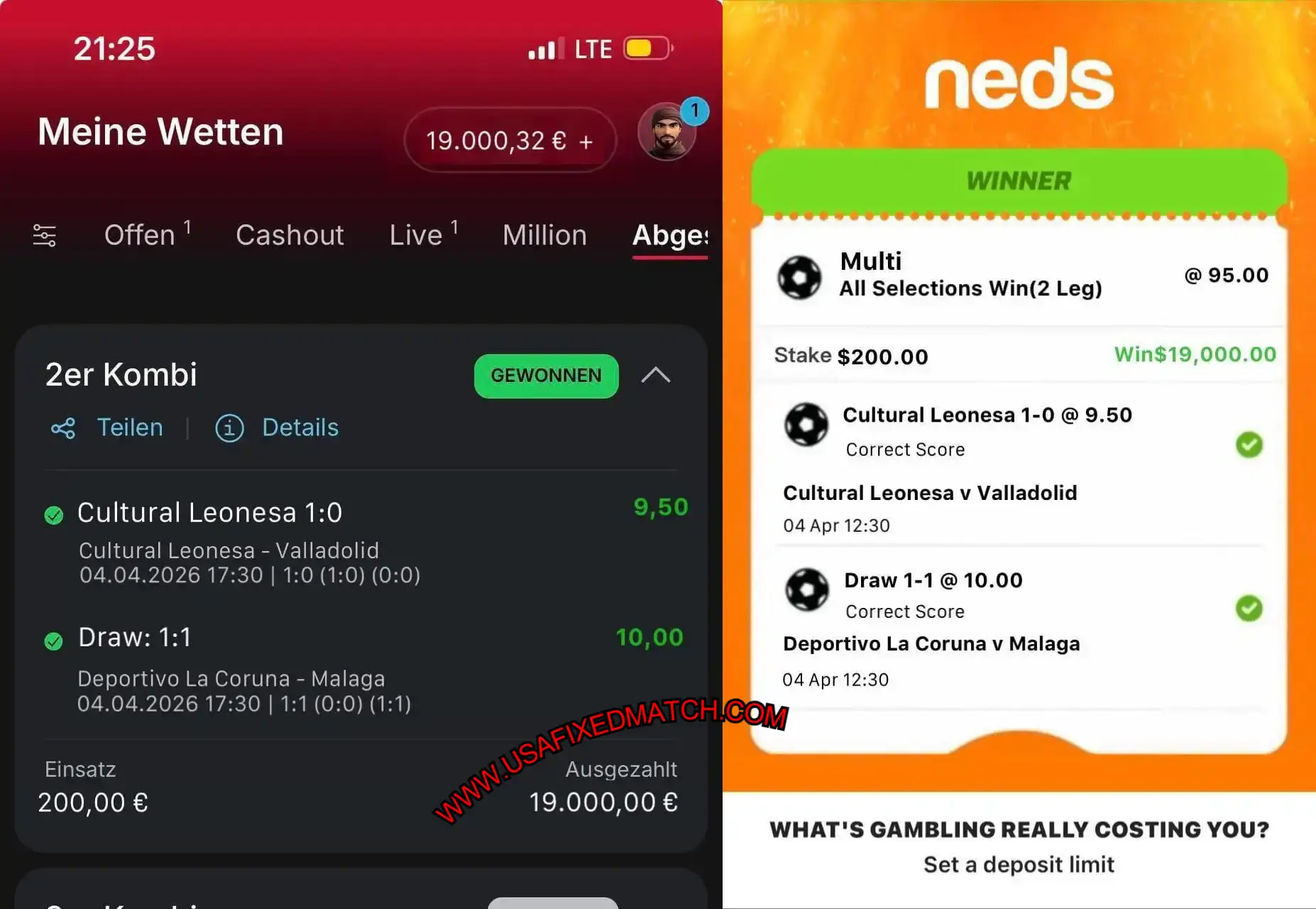 | Cultural Leonesa vs Valladolid | 1:0 (CS) | 9.50 | FT: 1:0 WIN |