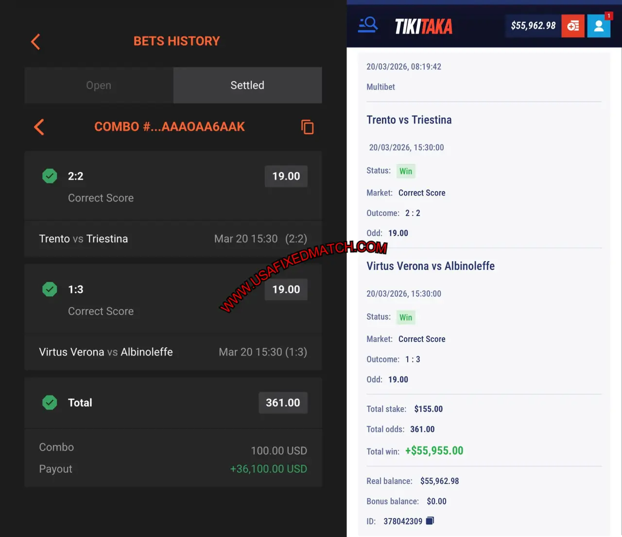 CORRECT SCORE FIXED MATCHES OUTCOME FROM DATE: 20/03/2026 WON